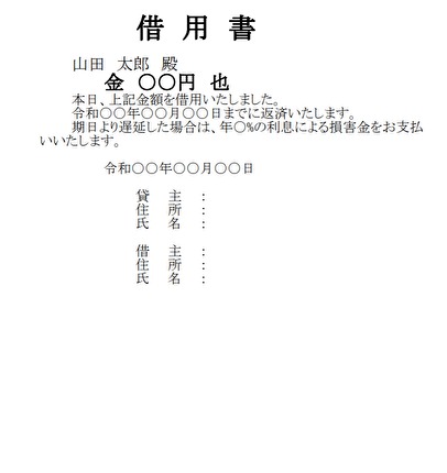 失敗のない借用書の書き方 無料wordテンプレートをダウンロード マネープランニング