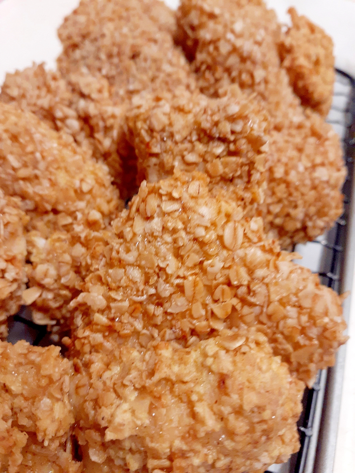 オートミール衣で揚げないクリスピー鶏胸肉レシピ パン粉を代わり使う人気の作り方 Weboo ウィーブー 暮らしをつくる
